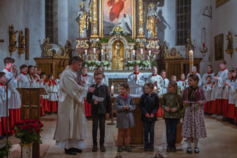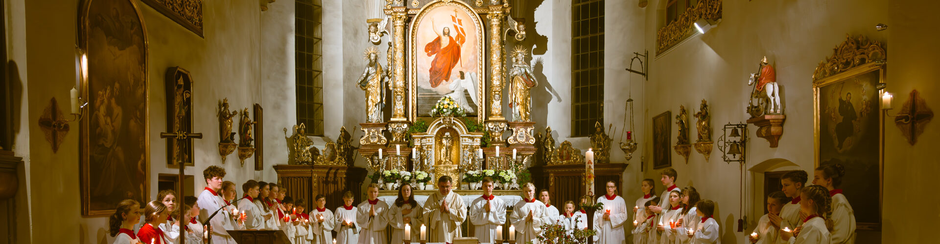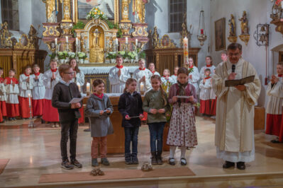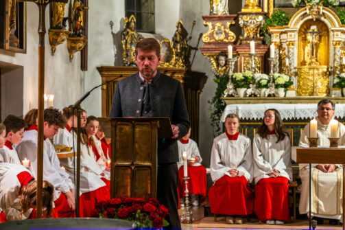 Der Dirigent und Chorleiter des Kirchenchores und -orchesters Jürgen Gieck hat eine eigene Messe komponiert. Diese wurde in der Osternacht erstmals aufgeführt. Es erklang die „Kleine Festmesse in Es“ mit Kirchenchor und Orchester Samerberg. Ein Hauch von Ewigkeit erfüllt die Luft, wenn die musikalische Gestaltung der Osternacht erklingt. Die Klänge der Auferstehung, getragen von Orgel, Chor und Orchester, durchdringen die festlich geschmückte Kirche und berühren die Herzen der Gläubigen tief. Jeder Ton scheint das Geheimnis der Auferstehung Christi zu preisen und die Freude über neues Leben im Licht zu verkünden. Die Melodien führen die Gemeinde auf eine spirituelle Reise, begleitet von Hoffnung und Glauben. Es ist, als ob die Musik selbst die Botschaft der Osternacht in harmonischer Schönheit ausdrückt und die Feierlichkeiten zu einem unvergesslichen Erlebnis macht. In diesen Momenten wird spürbar, wie die Klänge der Auferstehung die Seelen berühren und das Osterfest in einer Lichtfeier von besonderer Tiefe und Bedeutung erscheinen lassen.
