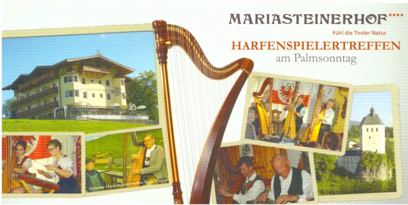 Am Palmsonntag, den 25. März, findet im Mariasteinerhof im tirolerischen Mariastein das 47. Harfenspielertreffen statt. Beginn des von der Familie Radinger organisierten Volksmusiktages ist um 11 Uhr mit einem Gedenkgottesdienst in der Wallfahrtskirche Mariastein für alle verstorbenen Harfenspieler/innen mit Pfarrer Matthias Oberascher und mit festlicher Umrahmung durch Magdelena Außerlechner und Julia Strasser. Das weitere Treffen der Harfenspieler aus Tirol und Bayern beginnt dann um 13.30 Uhr im Mariasteinerhof (mit verschiedenen Instrumental- und Gesangsgruppen). Durch das Programm führer ORF-Moderator Dr. Peter Kostner. Ab 17 Uhr ist noch zwangloses und gemütliches Musizieren. Es laden ein: die Wirtsleute Maria und Thomas Radinger.