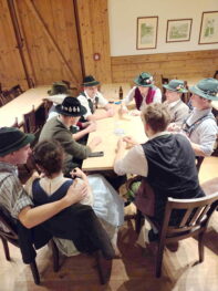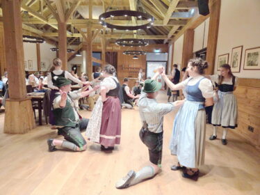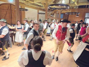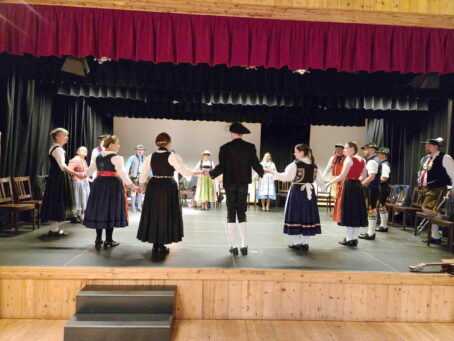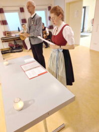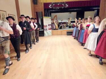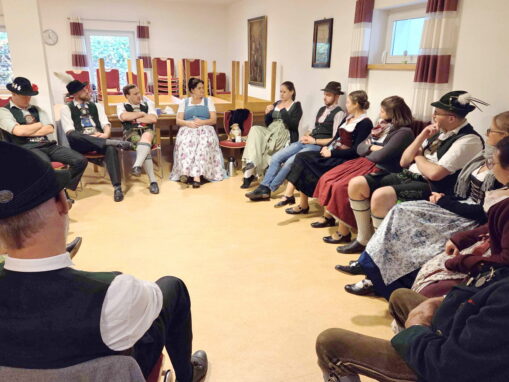 Zu den Kursthemen zählten die Gestaltung einer Tanz- und Plattlerprobe mit den Sachgebiets-Vorsitzenden Matthias Wiesheu und Florian Kreß sowie Schriftführerin Hildegard Kallmaier, dazu Presse- und Öffentlichkeitsarbeit (Schwerpunkt: Darstellung trachtlerischer Inhalte in den sozialen Medien) mit Adelheid Bonnetsmüller vom Sachgebiet ‚Öffentlichkeitsarbeit‘, Motivation in den aktiven Gruppen (Ideen und Impulse) mit dem stellvertretenden Landesvorsitzenden Christian Kammerbauer, Brauchtumsvermittlung interessant gestalten mit Marianne Heidenthaler (Vorsitzende des Sachgebiets Mundart, Laienspiel und Brauchtum) und ein Theater-Blitzkurs mit Walter Sirch (früherer Vorsitzender des Sachgebiets Mundart, Laienspiel und Brauchtum). Ergänzt wurde das Angebot durch einen Rhetorik-Grundkurs und das Seminar ‚Reden schreiben mit KI (künstliche Intelligenz)‘ jeweils mit Referenten der Hanns-Seidel-Stiftung. Themen rund um das Boarische Gwand (Wann ziag I wos an…?) bot zudem die frühere Gautrachtenwartin des Gauverbandes I, Rosmarie Henke und natürlich durfte ein zünftiger Abend mit Tanzen, Plattln, Spiele, Auftritten der Hinterskirchner Aktiven und geselligem Beisammensein, schneidig umrahmt von der Oberlauser Tanzlmusi nicht fehlen. Ein feierlicher Wortgottesdienst mit Sepp Sperr/Gauverband I und musikalischer Begleitung durch Simon und Franziska Doser sowie die Abschlussbesprechung mit dem Dank an die Referenten und der Ausgabe der Teilnahme-Urkunden rundeten die erfolgreiche Wochenend-Schulung ab. Im Anschluss an das Seminar nutzten außerdem noch viele Schulungs-Teilnehmer die Gelegenheit, dem Trachtenkultur-Museum mit der Geschichte der Trachtenbewegung in Bayern und den zahlreichen ausgestellten Trachten einen Besuch abzustatten.