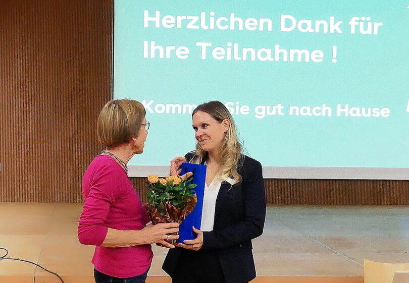 Bericht und Bild: Tschali Wastl – Senioren-Beauftragte Martina Wagner (links) überreicht an Krankenkassen-Direktorin Judith Häusl zum Dank ein kleines Präsent.