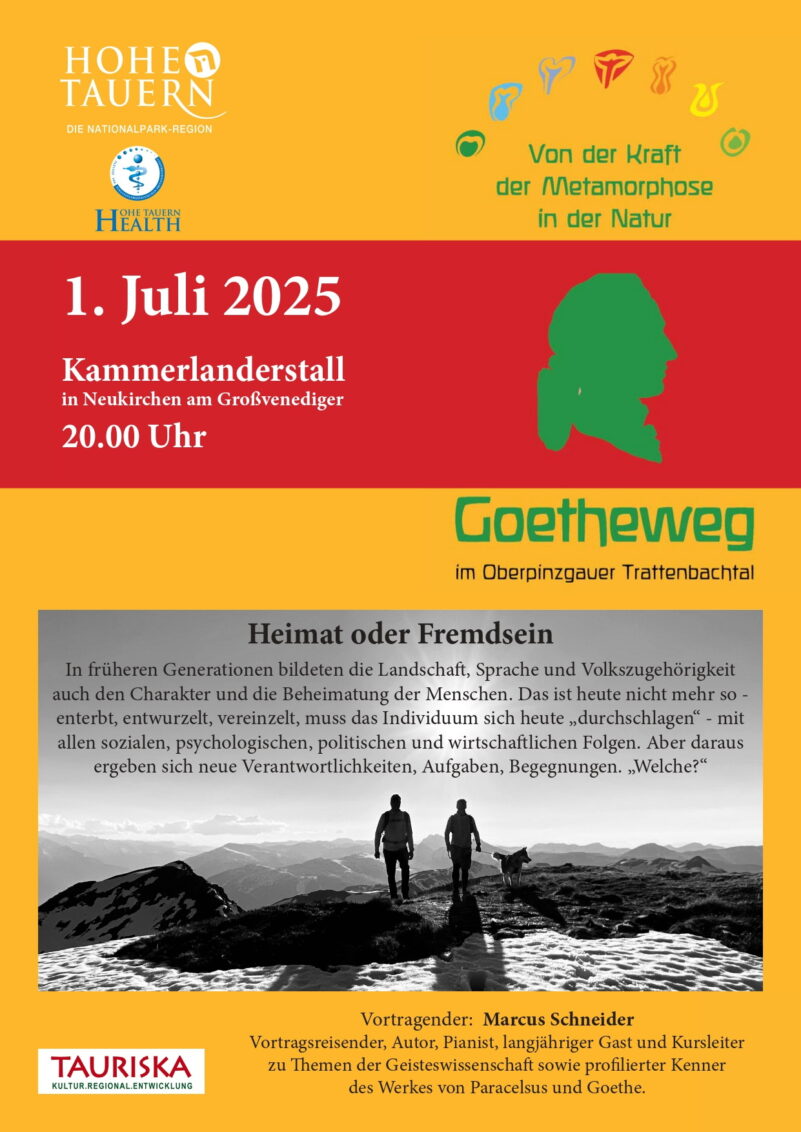 Vortrag Heimat oder Fremdsein von Marcus Schneider – Dienstag 1. Juli 20 Uhr, TAURISKA-Kammerlanderstall, in Neukirchen am Großvenediger im Salzburger Land.