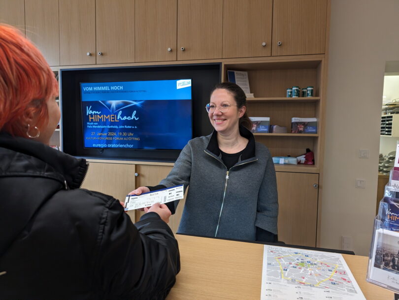 Touristinfo im Rathaus. Das dortige Team steht mit Rat und Tat bereit und gibt gerne Auskunft über Rest-Kontingente und Sitzplätze.