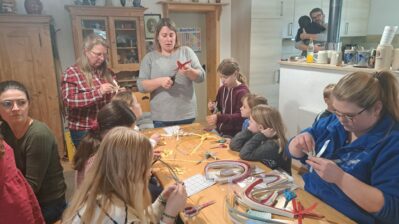 Bericht und Fotos: Hans Kronseder – Vorweihnachtliche Bastelstunde in Vilsheim, daran nahmen 30 Kinder und Jugendlichen der Trachtenvereine der ARGE Landshut nahmen teil.