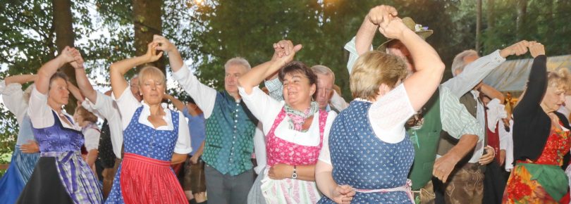 Gebensbach: “Auf geht’s zum Waldvolkstanz” lautete das Motto und wie zu erwarten, war der Zulauf an Tanzbegeisterten bei idealen und trocken Wetterbedingungen wieder beachtlich. Schnell füllte sich das Bomaholz rund um die aufgestellte Tanzbühne mit Gästen aus nah und fern, die adrett gekleidet in frescher Lederhosentracht und bezauberten Dirndln einen gepflegten Volkstanzabend verbrachten. Schon seit inzwischen 32 Jahren stellt der örtliche Volkstanz im Bomaholz beim alljährlichen beliebten Waldfest – heuer im 42 Jahr des Volkstrachten-Erhaltungsverein “d’Vilstaler” Gebensbach nicht nur eine feste Größe im kulturellen Veranstaltungskalender dar, sondern gilt darüber hinaus als wahres Schmankerl für Volkstanzbegeisterte. Der Volkstanzabend wird einmal jährlich organisiert. Trotz gleichartiger Veranstaltungen im Umkreis erlebt der Volkstanz im Freien, besser gesagt im Holz nach wie vor einen immensen Zuspruch. Die überaus große Beliebtheit dieser Tanzveranstaltung stellt damit ein regelrechter Höhepunkt für Freunde der Volksmusik und vor allem des bayerisch-traditionellen Volkstanzes dar. Der hervorragende Anklang liegt dabei sicherlich in der stets vorherrschenden angenehm geselligen Stimmung mit viel traditionellen und flotten Volkstanzrunden zu besten bayerischen Klängen begründet. Ein kurzweiliger Volkstanzabend also, auf den sich die Gäste schon lange im Vorfeld freuten und der auch schon lange im Gedächtnis bleiben wird. Neben der Pflege der Förderung und dem Erhalt des Brauchtums “Volkstanz” steht bei dieser Veranstaltung auch ganz klar das zünftige und gesellige Beisammensein bei Tanz und bayerischer Musik im Vordergrund. Nachdem die ersten einstimmenden Musikstücke durch die “Woinzacher Tanzlmusi” Lust auf’s Tanzen machten, ging es auch schon tänzerisch und musikalisch so richtig mit dem Auftanz zur Sache. Nach einer kurzen Begrüßung durch den Trachtlervor-sitzendem Franz Leipfinger übernahmen die Vortänzer Rita und Anton Fleidl die Tanzleitung für den gesamten Tanzabend. Im Jahre 1987 wurde bereits der Wald-Volkstanz unter der Regie des damaligen Vorstands Jakob Mooshofer ins Leben gerufen. Alte wie auch moderne Volkstänze über einfache Rundtänzen bis hin zu anspruchsvollen Figuren- und Wechseltänzen aber auch ausgiebig Boarische, Landler, Walzer, Polka, Dreher und Zwiefache bot dieser Volkstanzabend im Freien. Die Tanzfläche war von Anfang an bis weit nach Mitternacht stehts gut gefüllt. Es war somit ein Tanzabend ganz im Zeichen der Besucher, deren Volkstanzherz dabei auch sicherlich höher schlug.Angefangen vom Boarischa, Bauernmadl, Siebenscritt, Salzburger Dreher, Maschierboarischa, über den Böhmerwaldlandler, Kreuzpolka und Waldjaga, Sternpolka bis zur Mazurka war alles geboten. In der Pause tanzte die Gebensbacher aktiven Tanzgruppe den Kronentanz für alle anwesenden Volkstanzler. Einen wesentlichen Beitrag hatte auch die Musikgruppe “Woinzacher Tanzlmusi” auf das Gelingen dieser Tanzveranstaltung. Sie boten mit ihrem Repertoire nicht nur Instrumentalmusik, sondern begleiteten diese auch immer wieder mit bayerischem Liedgut. Im Vordergrund des Volkstanzabends stand somit natürlich das Tanzen, aber auch das Zuhören war ein wahrer Genuss.
