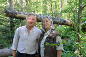 Sprechen über die Waldentwicklung im Nationalpark und die sich daraus ergebenden Chancen für die Region, Alfons Schinabeck, Aufsichtsratsvorsitzender der Ferienregion Nationalpark Bayerischer Wald und Bürgermeister von Neuschönau, und Nationalpark-Rangerin Christine Schopf. (Foto: Nationalpark Bayerischer Wald)