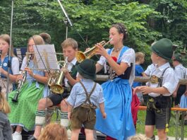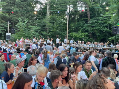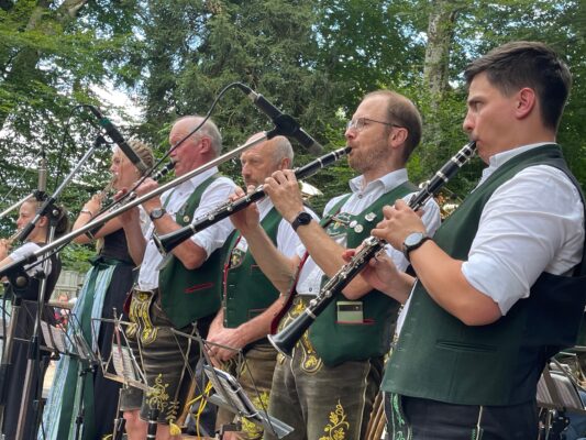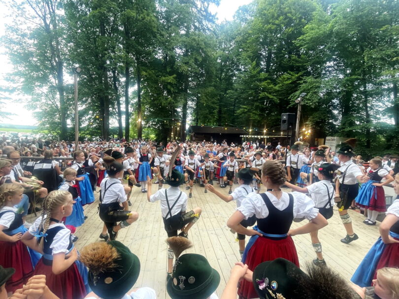 Zur passenden Unterhaltung im idyllischen Schlosspark trugen zu Beginn die Dirndl und Buam der Jugendblaskapelle unter der Leitung von Sebastian Graf und danach die Erwachsenen-Kapelle mit Ansager Georg Aicher bei. Die Kinder-, Jugend- und Akivengruppe des Vereins zeigten mit Schlag- und Marschplattlern sowie mit Figurentänzen, dass sie sich mit vielen Proben auf die Auftritte vorbereitet hatten. Zu vorgerückter Stunden war eine Schlosspark-Bar ein weiterer Anziehungspunkt und Treffpunkt.
