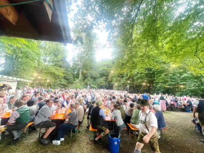 Wildenwarter, Chiemgauer und Urlaubsgäste aus nah und fern trafen sich in großer Anzahl im Wildenwarter Schlosspark als der Trachtenverein „Die lustigen Wildenwarter“ zu seinem ersten Waldfest in diesem Sommer eingeladen hatte. Alle Hände voll zu tun hatten dabei die Ehrenamtlichen des Vereins beim immer wieder Aufstellen von neuen Sitzplatzgarnituren, bei der Versorgung aus der Waldschänke und aus der Grillküche.