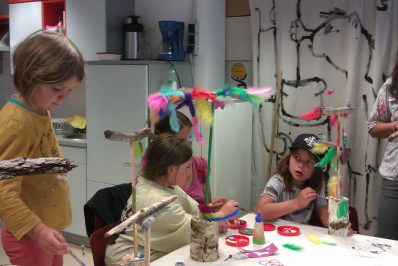 Unsere Kinder nahmen an einem Workshop teil und fertigten eine Stehle aus Holz an. Begeistert „werkelten“ die Kinder und hämmerten, leimten und sägten die Hölzer. Mit Hingabe gestalteten und verzierten die Kinder kreativ ihre eigene Stehle. Unter pädagogischer Anleitung durften die Kinder zahlreiche Materialien verwenden und Werkzeuge kennenlernen. Die Kinder freuten sich über ihr selbst hergestelltes Kunstwerk aus Birkenholz und Schwemmholz.