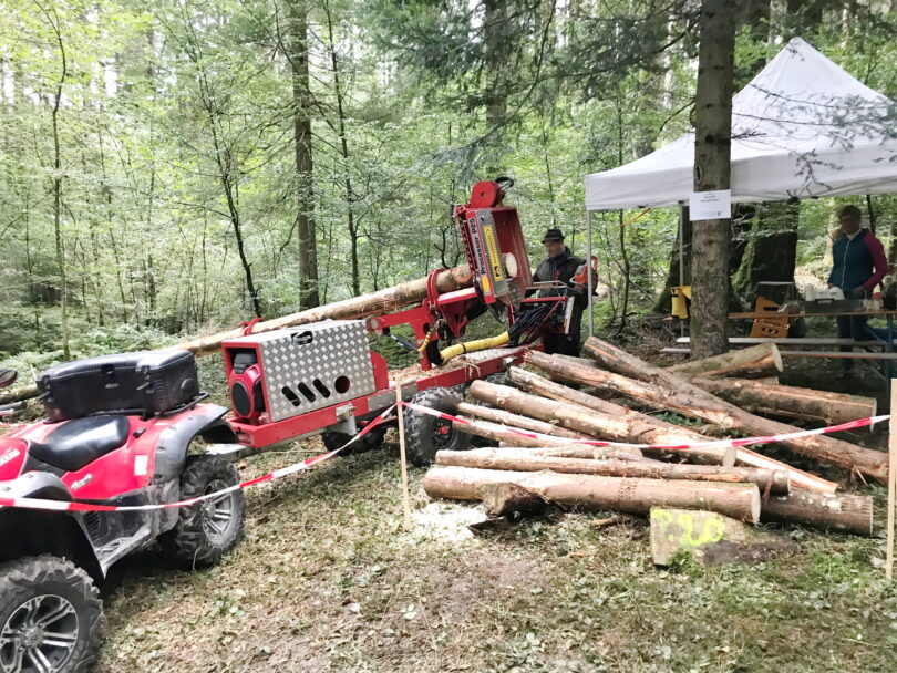 Etwa 8.000-10.000 Besucher dürften zum Oberbayerischen Waldtag am Kloster Reutberg bei Sachsenkam gekommen sein. An der vom Forstbereich des AELF Holzkirchen organisierten Veranstaltung beteiligten sich über 110 Aussteller, die sich durchwegs positiv überrascht vom großen Besucherandrang zeigten. Landtagspräsidentin Ilse Aigner und Behördenleiter Christian Webert eröffneten im Festzelt den Waldtag und betonten gemeinsam mit dem Tölzer Stimmkreisabgeordneten Thomas Holz (CSU) die besondere Bedeutung des Waldes für den Klimaschutz und das Gemeinwohl. Den kirchlichen Segen für die Veranstaltung spendeten Spiritual Pfarrer Markus Gottswinter und Schwester Benedicta vom Kloster Reutberg. Der Waldtag verteilte sich auf vier Ausstellungsareale mit Festplatz, Waldparcours, Sägewerk und Zimmerer-Schreinerbereich. Die Besucher konnten kostenfrei mir Shuttlebussen zu den verschiedenen Ausstellungsbereichen gelangen. Neben einer großen Bandbreite an Informationen rund um die Bereiche Wald, Forstwirtschaft, Natur und Jagd wurde ein breites Spektrum forstlicher Maschinen- und Gerätetechnik – vom kleinen Handgerät bis zur Großmaschine präsentiert. Laufende Vorführungen mit Forstmaschinen und Geräten, neuester Forst-Akkutechnologie und eindrucksvolle Demonstrationen der Berufsgenossenschaft SVLFG zur Arbeitssicherheit im Wald fesselten viele interessierte Besucher. Im Zentrum der Veranstaltung standen Informationen zur nachhaltigen und waldschonenden Nutzung des Rohstoffs Holz. Anhand eines mit knapp 30 Kubikmetern Holzstämmen beladenen LKW’s wurde veranschaulicht, dass es kaum als 15 Minuten dauert, bis diese Menge wertvollen Rohstoffs im Zuständigkeitsbereich des AELF Holzkirchen – also in den Landkreisen Bad Tölz und Miesbach wieder nachwächst.