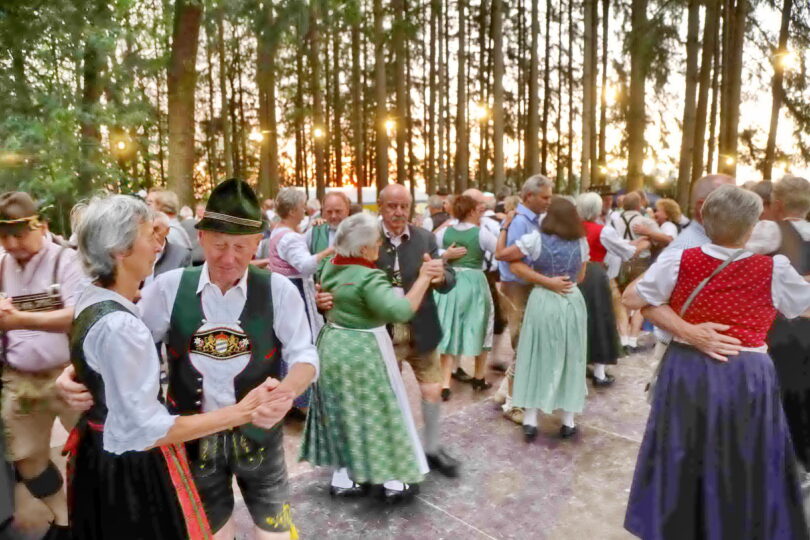 “Auf geht’s zum Waldvolkstanz” lautete das Motto am Samstagabend, 12. August und wie zu erwarten, war der Zulauf an Tanzbegeisterten bei idealen und trocken Wetterbedingungen wieder beachtlich. Schnell füllte sich das Bomaholz rund um die aufgestellte Tanzbühne mit Gästen aus nah und fern, die adrett gekleidet in frescher Lederhosentracht und bezauberten Dirndln einen gepflegten Volkstanzabend verbrachten.