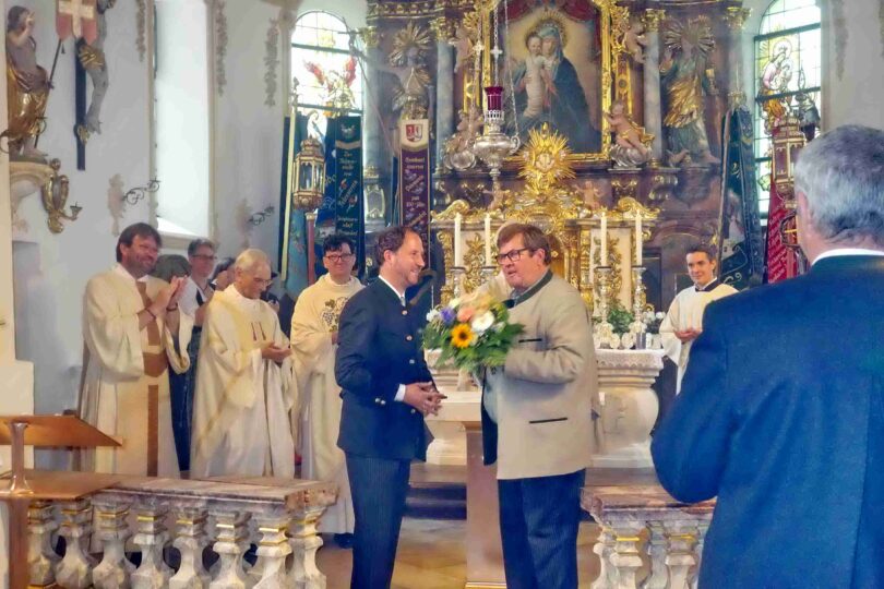 Der große Dank des Kirchenpflegers an die vielen Beteiligten galt dem Ordinariat, das beim Festgottesdienst durch Dr. Anja Schmidt, der Leiterin des Kunstreferates und durch Peter Kotthoff vertreten war, ebenso der Finanzkammer und dem Baureferat des Ordinariats. Die Ausführung und Planung der Arbeiten oblag dem Architekturbüro Krug Grossmann aus Rosenheim, die bei ihren Prüfungen mit Geschäftsführer Peter Lippert und mit der Projektleiterin Birgit Stroebitzer auch den Riss in der Decke („Wir haben einen Dachschaden“) entdeckt haben. Der erforderliche Wiederaufbau der beiden Seitenaltäre wurde von der Firma Hans Prokop übernommen, ein besonderer Dank für die gekonnten Aufbau- und Stuck-Arbeiten galt Christian Wiegerling. Wertvolle Unterstützung leisteten hierbei auch Thomas Hacklberger vom Büro für Denkmalpflege und der Kirchenmaler Michael Stein. Dass die Glocken wieder läuten, das ist in erster Linie dem Kirchturm- und Glockenspezialisten Roland Maurer aus Tirol zu verdanken. Das Planungsbüro Ossner zeichnete für die gesamte Elektroplanung verantwortlich und für die richtige Beleuchtung kümmerte sich die Firma 3LPI mit Florian Zach. Auch die Orgel brauchte nach der langen Zeit der Einhüllung wieder eine fachliche Intonierung, für diese sorgte die Firma Eisenbarth, die Firma Boris Gramer stellte Container bereit und unterstützte als Baumeister. Zum Schluss dankte Kirchenpfleger Dhom allen Ortsvereinen und Einwohnern sowie den örtlichen Pfarrgremien für Eifer, Verständnis und Hand-Anlegen und lud für Samstag, 8. Juli von 14 Uhr bis 18 Uhr zu einem Tag der offenen Tür in der Wallfahrtskirche Maria Stern ein.