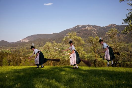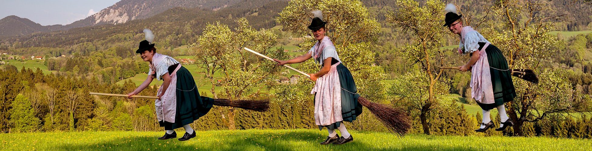 Eigentlich tanzen in der Walburgisnacht Hexen in den 1. Mai. Doch heuer staunten die Samerberger ob einer neuen Erscheinung: die aktiven Dirndl des Trachtenvereins „Almenrausch“ Rossholzen gingen selbst in die Luft, einmal mit der Kraft von farbenfrohen Luftballons und dann standesgemäß für die Walpurgisnacht mit Hexen-Besen. Die Aktion war natürlich nicht nur für eine Nacht gedacht, sondern der Start ins Jubiläumsjahr der Rossholzener Trachtler, die heuer ihren 120. Geburtstag feiern können. Dieses findet vom 14. bis 20. August im Festzelt statt, Näheres ist zu erfahren auf www.trachtenverein-rossholzen.de.