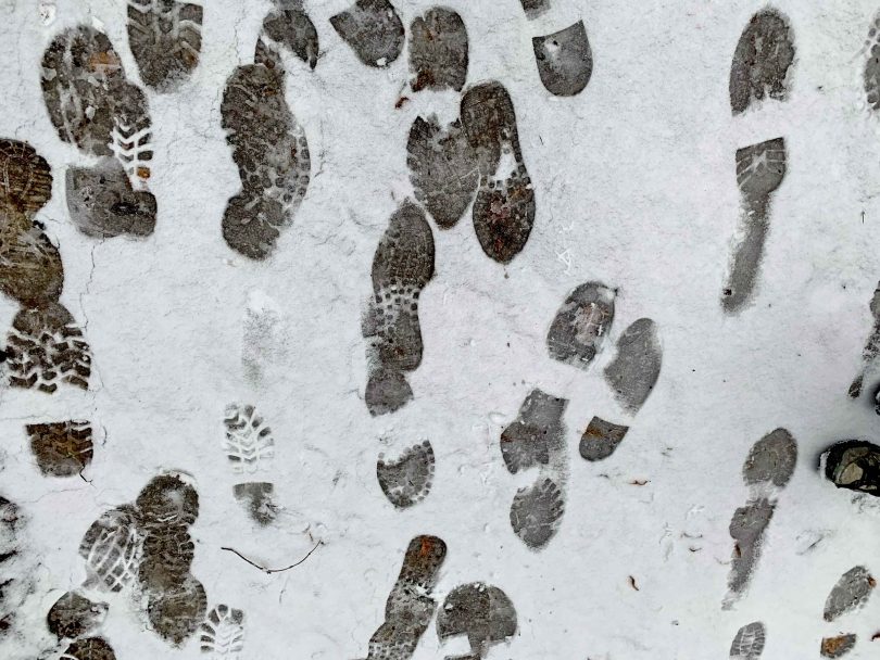 Auch wenn man nicht gleichzeitig und gemeinsam in großer Zahl in diesen Corona-Tagen unterwegs ist, so hinterlassen die Wanderer doch gewisse Spuren, dass sie nicht allein unterwegs waren. Davon zeugt dieses Foto auf einem kleinen Rundweg zwischen Prutdorf und Atzing.