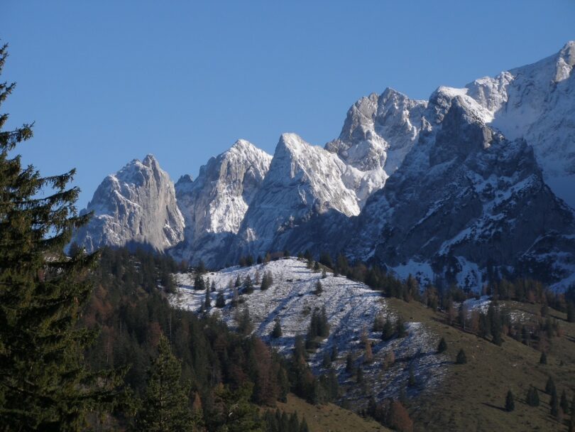 Westlich des Weinbergerhaus verläuft ein schmaler Pfad, über den wir nach einer Viertelstunde in die Forststraße einmünden, welche vom Aschenbrennerhaus herüber führt. Aber noch vor diesem biegen wir rechts in den Schneerosenweg ein und halten uns an seinem Ende nochmals nach rechts (Wegweiser “Kufstein”). Kurz darauf erreichen wir wieder unseren ursprünglichen Aufstiegsweg. Falls wir den Umweg über die Dickichtkapelle nicht mehr machen wollen, kürzen wir nach dem Hinterduxer Hof den weiteren Abstiegsweg ab, indem wir am Beginn der Rodelstrecke links die Skiabfahrt betreten. Nun geht es auf einem schmalen Wiesenweg steil hinab bis zur Theaterhütte. Ab dieser wieder auf dem bekannten Weg zurück zum Kaiserliftparkplatz.