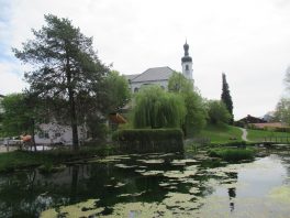 Wir starten unsere Rundwanderung in Lienzing beim Utzhof, einem Wirtshaus mit Biergarten und wandern auf markiertem Weg nach Norden. An einer Wegkreuzung biegen wir nach links auf den markierten Wanderweg ab, der durch das Lienzinger Filz nach Breitbrunn führt. Nach etwa 100 m weist ein Hinweisschild zum Grundlosen See. Nach einem kurzen Aufenthalt an diesem idyllischen Ort wandern wir weiter in Richtung Breitbrunn. Wir sind fast alleine unterwegs, nur ein Jogger und ein Radfahrer kommen uns auf dem schnurgeraden Weg entgegen. Kein Autolärm, absolute Ruhe, erst als wir aus dem Filz herauskommen und zur Rechten der kleine Weiler Mooshappen auftaucht, hören wir einen Traktor, der einsam seine Kreise zieht. Von Mooshappen her bewegt sich eine Reiterin auf die Wegkreuzung zu, an der wir in die geteerte aber kaum befahrene Straße nach Breitbrunn abbiegen In Breitbrunn steigen wir zu der auf einer Anhöhe über einem Teich liegenden Kirche hinauf und besichtigen diese und den Friedhof. Dann geht´s weiter nach Gstadt, wo wir den herrlichen Blick auf den Chiemsee mit der Fraueninsel und das grandiose Bergpanorama genießen. Auch hier besichtigen wir die Kirche und bewundern den Friedhof, um uns dann wieder auf stillen Wegen durch gelb-grüne Wiesen und Felder auf den Rückweg nach Lienzing zu machen, wo wir uns im gemütlichen Biergarten vom Utzhof eine wohlverdiente Brotzeit und ein Bier genehmigen.