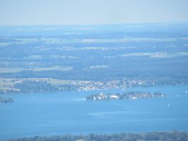 Ein paar Wanderer sitzen auf den Bänken vor dem Kircherl und genießen den traumhaften Panoramablick auf die darunterliegenden Ortschaften von Grassau über Staudach-Egerndach bis hinüber nach Übersee, auf das Kendlmühlfilz und vor allem den grandiosen Blick auf den Chiemsee mit seinen Inseln – einfach ein fantastischer Ort. Auch wir setzen uns auf eine Bank, machen Brotzeit und können uns kaum satt sehen.