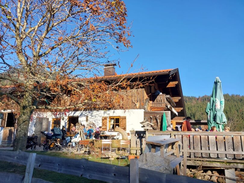 Dazu heißt es bei www.hoehenrausch.de: Die Stoanaalm ist eine Almhütte im tiroler Teil der Chiemgauer Alpen. Sie liegt oberhalb von Erl am Fuße des Spitzsteins. Die Alm ist beinahe das ganze Jahr über bewirtschaftet. Am Dienstag und Mittwoch ist jeweils Ruhetag, von Mitte November bis zum 1. Weihnachtsfeiertag bleibt die Stoanaalm geschlossen. Kulinarisch werden Besucher mit tiroler Spezialitäten wie Speckknödel, Kaspressknödel, Spinatknödel und kalten Brotzeiten verwöhnt. Neben deftigen Stärkungen gibt es hausgemachte Kuchen und den beliebten Topfentrudel. Am schnellsten ist die Stoanaalm vom Parkplatz Erlerberg zu erreichen. Der Aufstieg dauert etwa 20 Minuten. Auch von Sachrang kann man zur Alm hinauf wandern, hier muss man mit einer Gehzeit von einer Stunde rechnen. Den Spitzstein-Gipfel erreicht man von der Stoanaalm über die Goglalm, das Spitzsteinhaus und die Altkaseralm in etwa 1 ¾ Stunden.