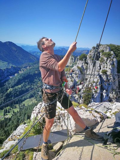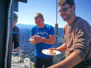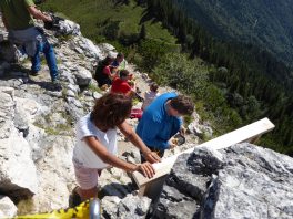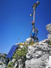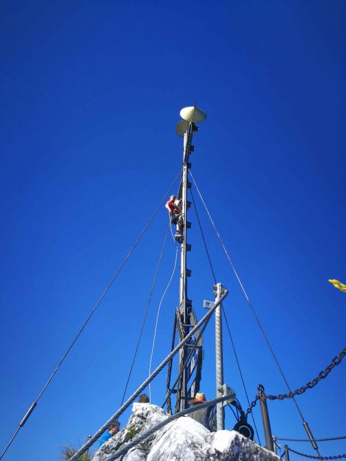 Foto/s: Manfred Haider und Georg Antretter – Eindrücke von den Wartungsarbeiten beim Chiemgauer Gedenkkreuz auf der Kampenwand.