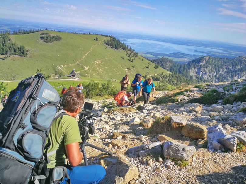 Vor nunmehr 70 Jahren wurde auf der Kampenwand das Chiemgauer Gedenkkreuz für die Gefallenen, Vermissten und Verstorbenen der  beiden Weltkriege aus den Landkreisen Rosenheim und Traunstein errichtet. Weithin sichtbar ist das Kreuz, wenn es beleuchtet ist. 1950 wurden Lampen installiert, die von ehemaligen Kriegsfahrzeugen stammen – so wie das gesamte 12 Meter hohe und 56 Zentner schwere Kreuz aus Überbleibseln des Zweiten Weltkrieges zusammengetragen und auf dem Gipfel errichtet worden ist. Nachdem die Lampen bei schweren Gewittern immer wieder Schaden erlitten, wurde vor 17 Jahren auf Solarenergie umgestellt. Die Initiative zur Erstellung eines Chiemgau-Kreuzes kam 1948 von Kriegsheimkehrer und Schreinermeister Franz Schaffner aus Höslwang. Bis heute haben er, sein gleichnamiger Sohn und Enkel mitsamt vielen weiteren Freunden aus Höslwang und dem Chiemgau dafür Sorge getragen, dass das Kampenwandkreuz immer in einem guten Zustand ist. Der letzte noch lebende Mann, der selbst beim Bau des Kreuzes mit Fertigstellung 1950 mit dabei war und Hand anlegte, war Paul Kink senior aus Höhenberg bei Aschau. Paul Kink verstarb in diesen Tagen und zwei Tage  vor seinem 90. Geburtstag. Ihm zu Ehren wird am Mittwoch, 9. September – dem Abend, an dem für ihn das Rosenkranzgebet in der Aschauer Pfarrkirche gebetet wird und am Tag vor dessen Beerdigung – abends das Licht des Kampenwandkreuzes erleuchten. Erst vor wenigen Tagen machten sich Franz Schaffner und Leonhard Hinterholzer von Chiemsee Solar zusammen mit weiteren Helfern aus Höslwang sowie mit einem Kamerateam des Bayerischen Fernsehens und mit Redakteur Georg Antretter auf den Weg zum 1.659 Meter hohen Gipfel der Kampenwand, um die Wartungsarbeiten an Kreuz und Beleuchtung vorzunehmen. Dazu erläutert Leonhard Hinterholzer: „Der Grund für den Einsatz der Solartechnik waren nicht nur die Schäden, sondern auch der Aufwand mit 5 Liter Benzin zum Gipfel zu steigen und in der Abenddämmerung das Benzinaggregat zu starten. Seit dem Umbau kann es dank der Funktechnik der Fa. Heinz Steinberger aus Rimsting bequem per Funk aus Höslwang oder aus Bernau eingeschaltet werden. Inzwischen wurden die Leuchtmittel auf LED umgestellt. Am Wochenende haben wir noch die Verkabelung und die Verbindungen in den einzelnen Lampen erneuert da diese teilweise korridiert/verrostet waren“.