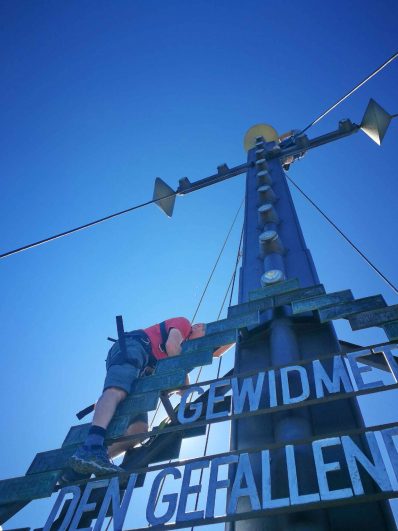 Wartungsarbeiten beim Chiemgauer Gedenkkreuz