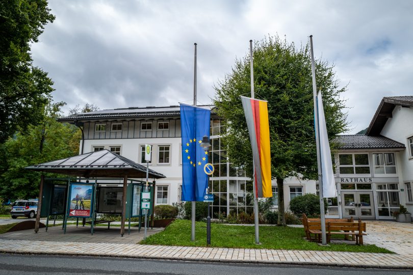 Fotos: Trauerbeflaggung am Rathaus Samerberg und vor dem Rathaus in Aschau.