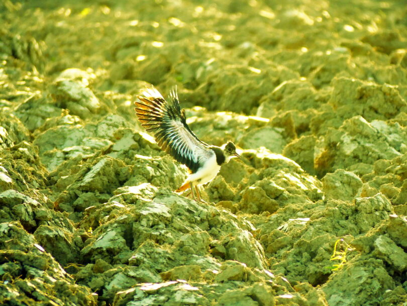 Bericht: Landratsamt Rosenheim – Ein fast flügger Kiebitz-Jungvogel beim Flugtraining. Bild: Landratsamt Rosenheim / Margit Böhm