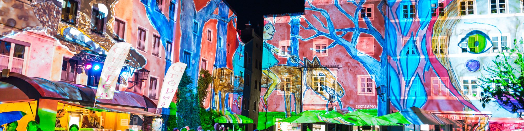 Besonders eindrucksvoll waren die handgemalten Projektionen am Brucktor, aber auch ein Magischer Brunnen von Simon Klaffl oder Kunst- und Lichtobjekte von Richard Wenzel sowie der Rumpelmeier Kreativwerkstatt. In der Hofstatt sah man handgemalte Projetkionen der Wasserburger Küntstlerinnen Evi Wackerle und Anette Rosin. Sie wechseln den ganzen Abend und verändern die Hausfassaden in bunte Welten. Die Besucher waren begeistert und die Kinder freuten sich riesig.