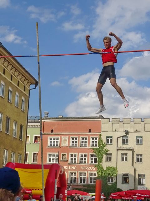 Ab 10:00 Uhr startet die Veranstaltung mit den Schüler-/und Jugendwettbewerben, von der U14 bis zur U20 ist dort jeder am Start. Bevor dann am späten Nachmittag die Hauptwettkämpfe im Männer und Frauen Stabhochsprung und Kugelstoßen beginnen. Um 14:45Uhr springen die Jugendlichen zusammen mit den Frauen, danach beginnt gleich um 16:45Uhr der Top Wettkampf im Männer Kugelstoßen und als weiteres Highlight beginnt dann um 18Uhr der Hauptwettkampf im Männer Stabhochsprung. Hier finden sich Springer, wie z.B. unseren Lokalmatadoren Max Kurzbuch und Robert Dippl mit Bestleistungen von 4,80m und 19,39m. Der Favorit im Stabhochsprung Gordon Porsch reist dieses Jahr aus der Nähe von Frankfurt an und hat eine Bestleistung von 5,61m. 2018 war Deutscher Vizemeister in der Halle. Aber auch andere Größen, wie Julian Meuer (5,20m Bayern), der aktuelle Österreichische Staatsmeister Sebastian Enders (5,21m Österreich) werden an den Start gehen, um nur einen kleinen Teil zu erwähnen. Bei den Kugelstoßwettbewerben geht mit Christian Zimmermann ebenfalls ein nationaler Top Athlet in der Altstadt an den Start. Er wurde in der Halle dritter bei den Deutschen Meisterschaften und ist mit einer Bestleistung von 19,75m mit der 7,25kg schweren Kugel, der aktuell zweitbeste Kugelstoßer in Deutschland hinter David Storl. Im Anschluss lassen die Wasserburger den Abend wieder mit guter Rockmusik der Band „Raccoons“ ausklingen. Natürlich ist auch für das Leibliche Wohl gesorgt. Den ganzen Tag über gibt es frisches vom Grill, Crêpes, Kaffee und eine große Auswahl an Kuchen.