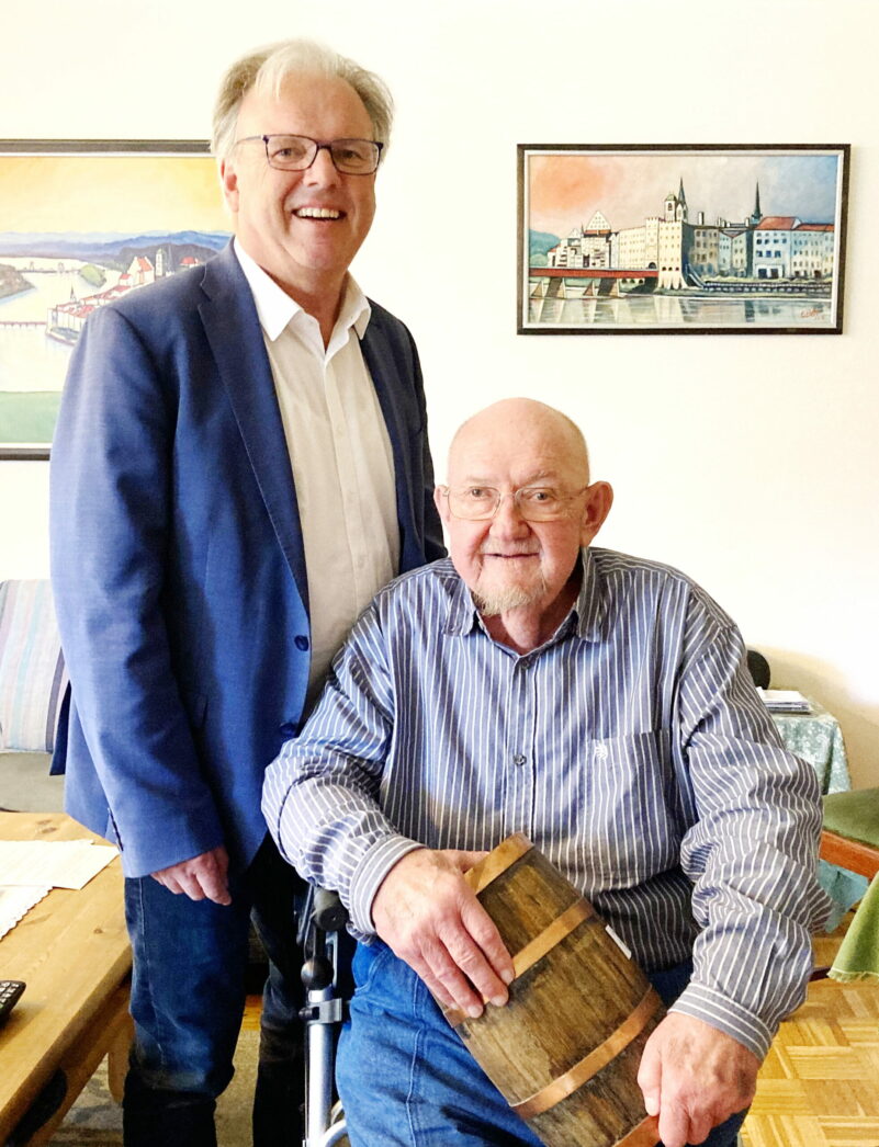 Abb.1: Erich Baumgartner mit Bürgermeister Michael Kölbl bei der Übergabe seiner Sammlung © Stadt Wasserburg a. Inn.