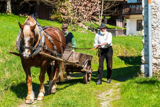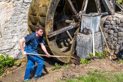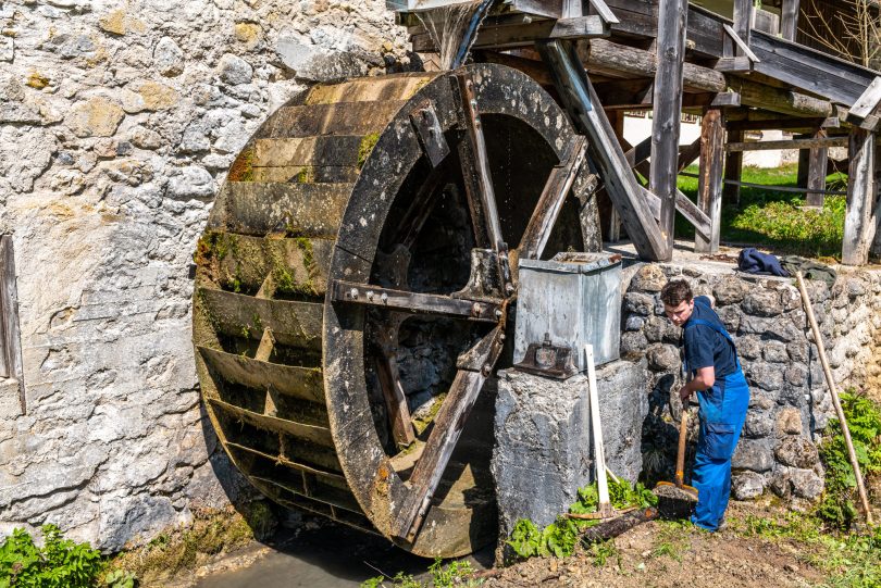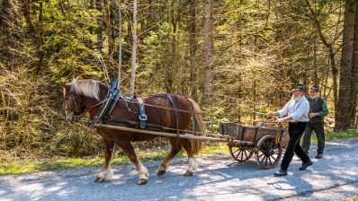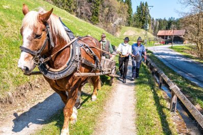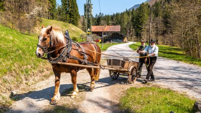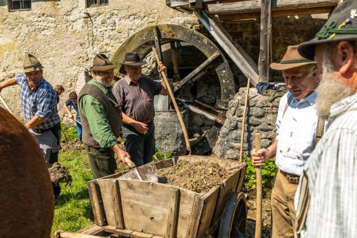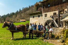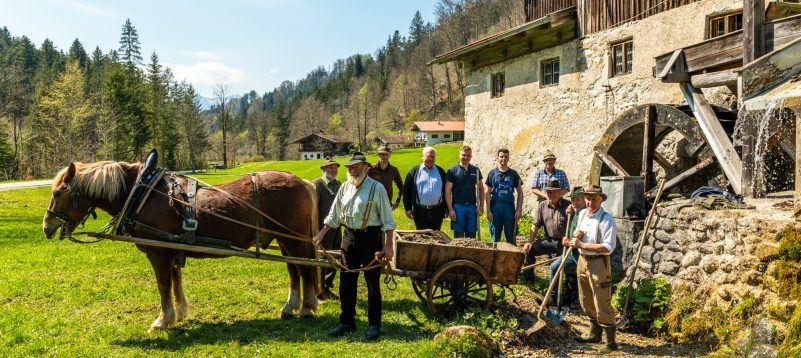 Gemeinsam sorgen sich die Samer vom Samerberg und die Schiffleute von Nußdorf am Inn, dass sich das historische Wasserrad an der Mühle im Mühltal sich wieder drehen soll. Zu diesem Vorhaben gab es einen ersten Arbeitseinsatz mit Pferd und Karren – davon diese Bilder.