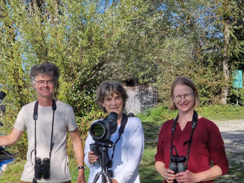 - Artikel_WVZ_2023-09-28_Bild1.jpeg: Wasservogelzähler-Koordinatoren, von links: Marc Kurzmann (neuer Chiemsee-Koordinator), Ulrike Riedel (bisherige Chiemsee-Koordinatorin) und Sabine Pröls (Leiterin der LBV-Regionalgeschäftsstelle Inn-Salzach)
