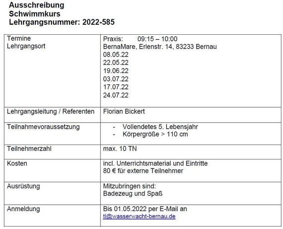 Bis 01.05.2022 per E-Mail an: tl@wasserwacht-bernau.de