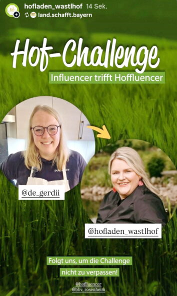 Diese Woche läuft die Hofchallenge zwischen Gerdi Hauser (Instagram @de_gerdii) und Maria Riepertinger (Instagram@hofladen_wastlhof).