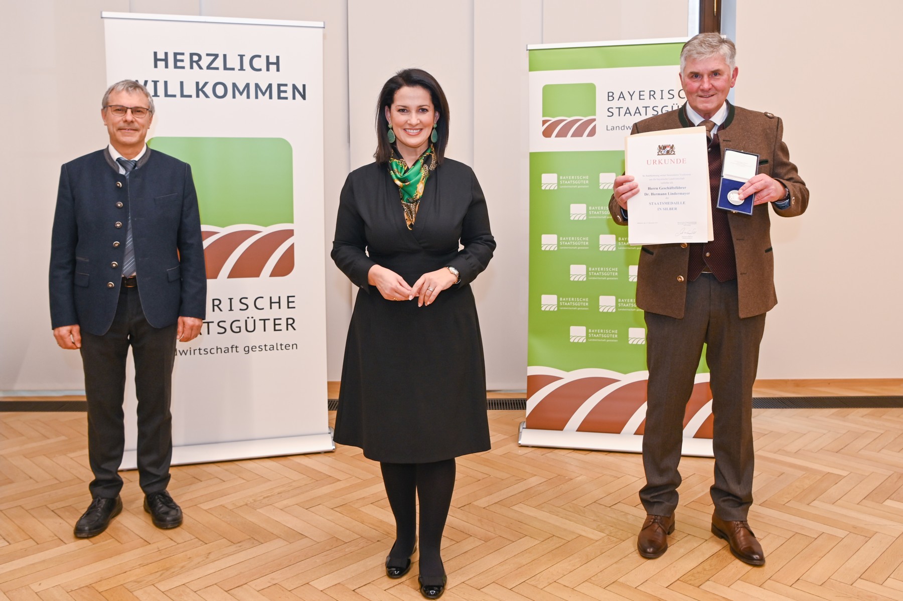 Staatsministerin Michaela Kaniber mit Dr. Hermann Lindermayer (r.) und Anton Dippold.