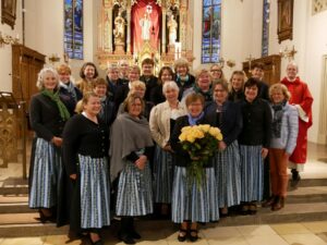 Verabschiedung von der 1. Vorsitzenden der Christlichen Frauenbewegung Frau Riedl Stephanie Frau Riedl ist mittig mit den Rosen abgebildet und alle Damen die in der gesamten Vorstandschaftszeit mit Frau Riedl zusammen gearbeitet haben.