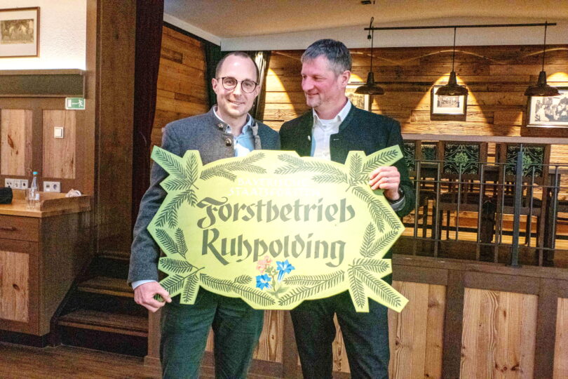 Joachim Keßler, Jahrgang 1973, geboren in Regensburg, hatte im Juli 2022 die Leitung des Forstbetriebs übernommen. Neumeyer würdigte ihn als moderne Führungskraft mit hoher Sensibilität für die Mitarbeiter und ausgeprägter Fähigkeit zum Dialog mit Gesellschaft und Bevölkerung. Keßler habe den Waldumbau erfolgreich gestaltet und ein effektives Waldschutzmanagement mit konsequenter Käfer- und Schneebruchaufarbeitung etabliert. “Das ist die Aufgabe eines modernen Forstbetriebsleiters, der die Aufgabe in der heutigen Zeit richtig versteht”, sagte Neumeyer. Keßler selbst sprach von einem weinenden und einem lachenden Auge. Ruhpolding sei wunderschön gewesen, aber seine Familie lebe immer schon in Wasserburg. Dorthin wechselt er nun als Forstbetriebsleiter. Er dankte dem Team in Ruhpolding. “Wir haben ein sehr gutes und engagiertes Team”, sagte er. Besonders hob er die vielen jungen Leute hervor, die am Forstbetrieb ausgebildet würden und zu Recht stolz auf ihren Beruf seien.