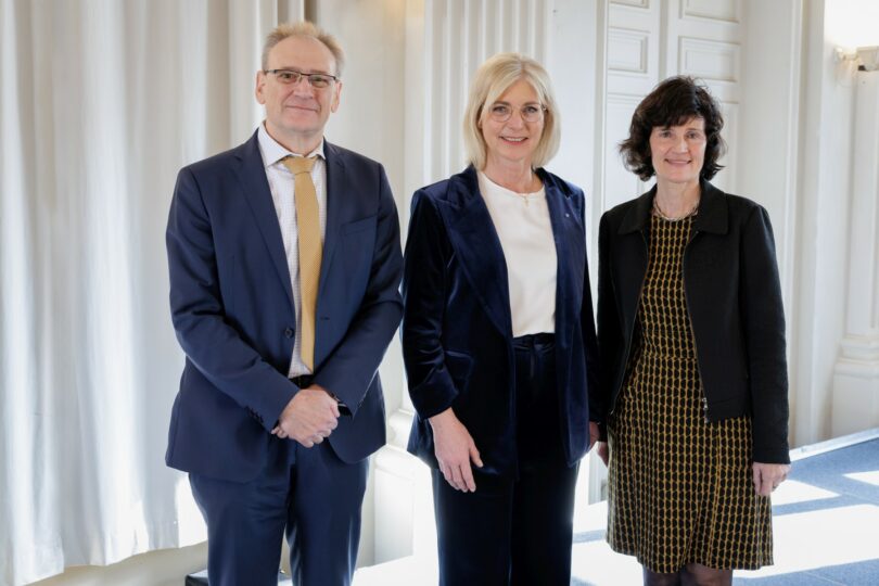 Das Foto zeigt Arbeitsministerin Ulrike Scharf zusammen mit dem Präsidenten des Landesarbeitsgerichts Nürnberg, Dr. Hans Dick, und der Präsidentin des Arbeitsgerichts München, Elfriede Kautnik.