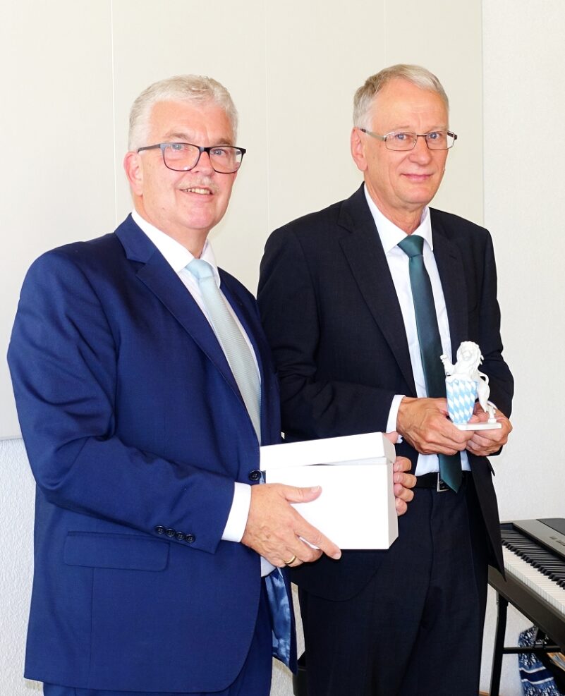 Die Festrede hielt Amtschef Hubert Bittlmayer, Amtschef im Bayerischen Staatsministerium für Ernährung, Landwirtschaft, Forsten und Tourismus. Er ging auf aktuelle Veränderungen ein und sagte: „Die Welt ist unsicherer, unübersichtlicher, komplexer, öffentlicher und medialer geworden. Das gilt auch für die Land- und Hauswirtschaft“. „Landschaftsnutzung, Tierhaltung, Waldumbau, Planungsverluste und Überbürokratismus fordern uns heraus“ – so Bittlmayer weiter, forderte Vereinfachungen im Bürokratieabbau und würdigte die im ländlichen Rosenheimer Raum bekannte Zusammenarbeit von Land- und Forstwirtschaft mit den Umweltverbänden und mit der Kommunalpolitik. Alsdann verabschiedete er Dr. Georg Kasberger mit einem Bayerischen Löwen und erinnerte daran, dass Dr. Kasberger innerhalb seiner Lebensleistung nicht nur in Diensten in München, Wasserburg und Ebersberg war, sondern in der Zeit von 1988 bis 1999 fünfmal im Rahmen einer beruflichen Auszeit Entwicklungshilfe in Afrika leistete.