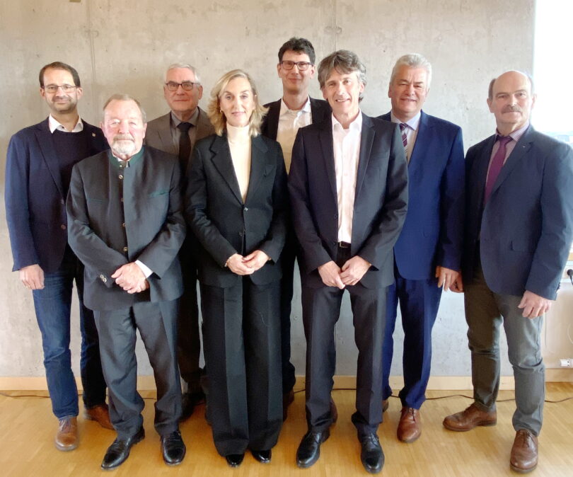 Bericht und Foto: Staatliches Bauamt Rosenheim – v.l.n.r.: Andreas März, Josef Huber, Prof. Christian Schiebel, Doris Lackerbauer, Stefan Leitner, Dr. Hermann Streicher, Prof. Dr.-Ing. Wolfgang Wüst, Alfons Kohl.