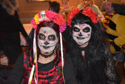 Die Schlechinger Weiber und Dirndl waren diesmal inspiriert vom „Dia de los Muertos“ und haben sich sehr stilecht in Mexikanerinnen verwandelt, die das Leben und den Tod feierten. Die Musikgruppe “5`e hamma” heizte den vielen Faschingsfans, die alle maskiert dabei waren, kräftig ein.