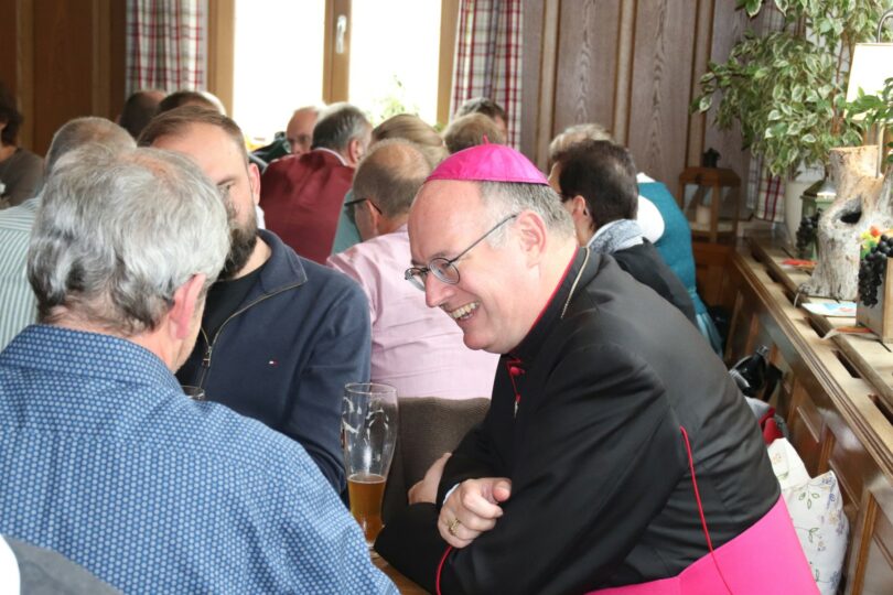 Neben der Feier der hl. Messe sollte der zwanglose Austausch beim Frühschoppen im Vordergrund stehen. Daher gab es sonst keine Ansprachen. Stattdessen trafen sich die KV-Mitglieder, die Seelsorger und die Verwaltungsleiter geschlossen im Landgasthof Stechl. Hier wurde bei Weißwürsten und Weißbier fleißig diskutiert. Neben den allgegenwärtigen Kirchensanierungen kamen u.a. die Immobilienstrategie des Erzbistums, die Studie einer Expertenkommission der Bischofskonferenz zur ethischen Landnutzung sowie die vakante Pfarrerstelle in Rott a. Inn zur Diskussion.
