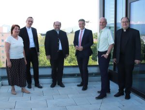 (von links nach rechts) Die persönliche Referentin des Weihbischofs Andrea Martin, Kreisdekan Daniel Reichel, Weihbischof Wolfgang Bischof, Landrat Otto Lederer, Dekan Helmut Kraus, Dekan Klaus Vogl.