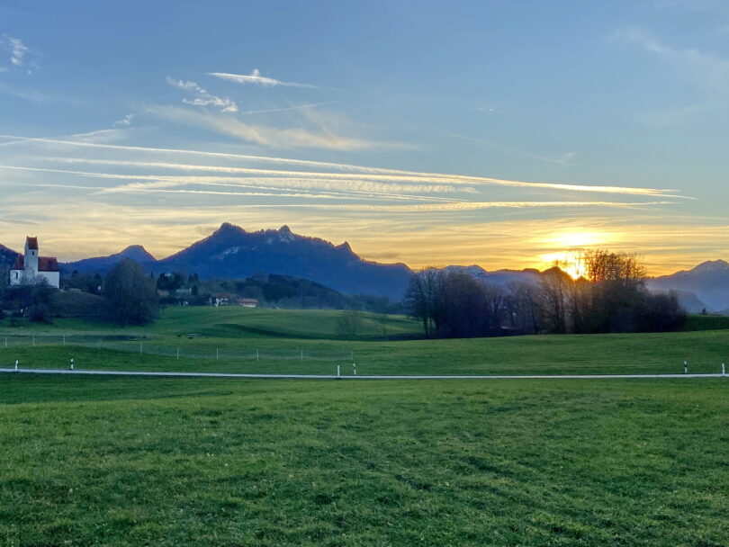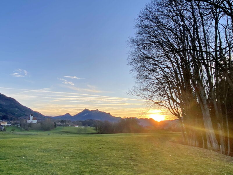 Auch wenn der Schnee mangelte, auf dem Samerberg gab es am Ersten Weihnachtsfeiertag dennoch reichlich schöne An- und Aussichten – wie diese Bilder vom Feierabend mit Blick über Grainbach zur untergehenden Sonne in den dahinterliegenden Bergen zeigen.