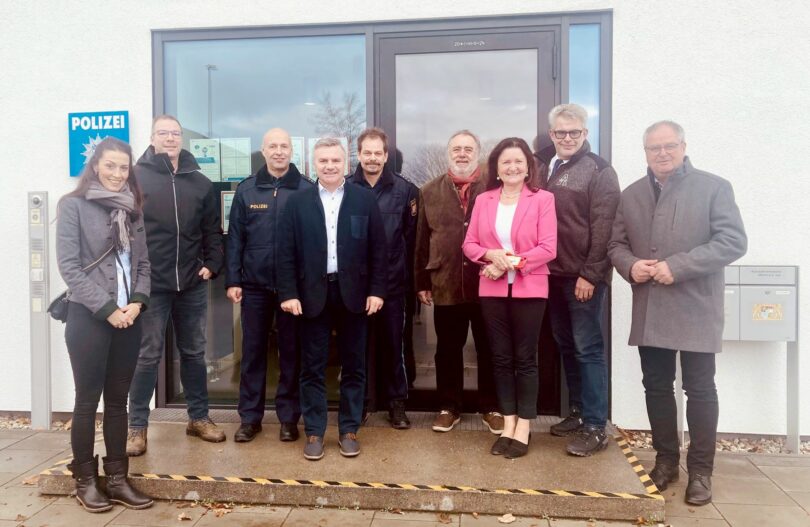 Foto: Bürgermeister der Gemeinden Wörth a. d. Isar und Niederaichbach, Landrat Peter Dreier, die Abgeordneten Nicole Bauer, MdB und Jutta Widmann, MdL dankten den Vertretern der Autobahnpolizei Wörth und Autobahnmeisterei herzlich für ihren Einsatz für die Sicherheit der Bevölkerung.