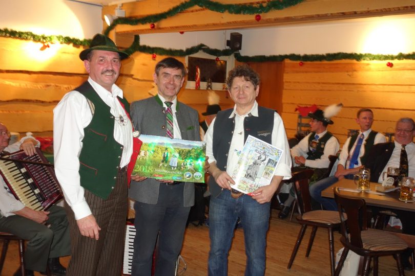 Schon viele Jahre bestehen freundschaftliche Beziehungen zwischen dem Chiemgau und dem Verein der Bayern in Berlin. Im Sommer diesen Jahres war der Verein mit seinem Vorsitzenden Helmut Amberger und mit seiner Fahnenabordnung mit dabei als in Prien-Atzing das Gautrachtenfest des Chiemgau-Alpenverbandes gefeiert werden konnte. Nunmehr konnte Anton Hötzelsperger vom GTEV “Daxenwinkler” Atzing bei der traditionellen, mit viel Musik gestalteten Weihnachtsfeier in Berlin-Lichterfelde den Berliner Trachtlern für ihr Kommen mit einem Gaufest-Kalender 2018 und mit einem Oberbairischen Festtags-Kalender danken. Die nächsten Begegnungen von Mitgliedern des Vereins der Bayern mit Chiemgauer Trachtlern bestehen dann vom 19. bis 28. Januar in der Bayernhalle anlässlich der Grünen Woche in Berlin.