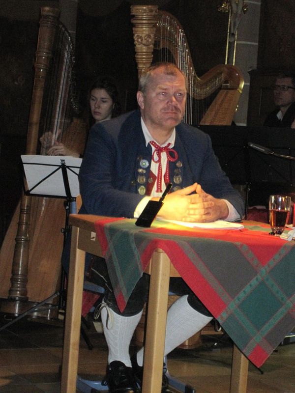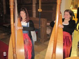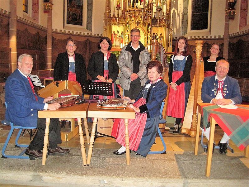 Was die Besucher hörten, begeisterte jeden, ein Autor und Sprecher, der an diesem Tag zur Höchstform auflief, erzählte, artikulierte und sprachlich mehrere Personen darstellte wurde in den festgelegten Passagen unterbrochen von den Klängen des Harfenspiels von Lena Bscheid und Felicitas Wutz. Virtuos eingesetzt und meisterlich gespielt klangen ihre Instrumente durch die Pfarrkirche. Ein anderes Mal war die „Prüflinger Saitenmusik“ an der Reihe. Inge und Hans, zwei Meister auf der Zither zogen alle Register ihres Könnens. Und schließlich erfüllte der Gesang der „Stoiber-Deandln“ den Raum. Die zwei Schwestern begleiteten sich auch selber am Hackbrett und an der Gitarre und zeigten allen zu Recht ihre Liebe zur Musik. Stimmig, berührend, zum Abschalten oder zur Einstimmung. Für jedes Gemüt war etwas dabei.