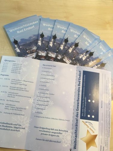 In Bad Endorf findet vom 1. bis 3.12. und vom 8. bis 10.12. jeweils von 16 Uhr bis 20 Uhr wieder ein Weihnachtsmarkt statt. Wie im Vorjahr ist nun heuer der neu gegründete Verein „Weihnachtszauber Bad Endorf“ der Veranstalter unter der Leitung von Frau Sabine Plank. Motto des Weihnachtsmarkts ist: Kultur, Tradition und Förderung der Dorfgemeinschaft. Der Vereinsvorsitzende Helmut Fleidl hat sich um ca. 14 Aussteller bemüht die insbesondere Hochwertiges anbieten. Für das leibliche Wohl ist ebenso gesorgt wie die Einbindung örtlicher Vereine. Kulturelle Besonderheiten werden im Hotel Endorfer Hof die Kinder-Oper Dornröschen aufgeführt. Ein besonderes Highlight wird ein „Krippenweg“ mit zahlreichen Krippen von örtlichen und überörtlichen Krippenbaumeistern sein. Pfarrer Hofstetter wird um 16 Uhr den Krippenweg einweihen. Der Markt wird von der Bürgermeisterin Frau Laban eröffnet.