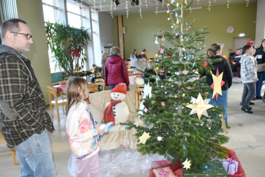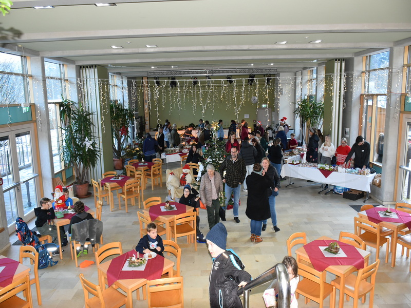 Marquartstein – Die Aula der Franz von Sales Schule in Niedernfels war festlich mit vielen Lichtern geschmückt; denn die Schüler mit ihren Lehrern hatten die Eltern und Besucher zu einem Weihnachtsmarkt eingeladen. Vorher wurde fleißig gebastelt für schöne Adventskränze, Gestecke und kleine Geschenkideen. Dafür waren in der Aula weihnachtlich geschmückte Stände aufgebaut, wo die Schüler ihre Produkte verkauften. Schulleiter Christian Auer berichtet, dass es vor Jahren mal klein angefangen und jetzt schon ein größerer Weihnachtsmarkt entstanden ist.