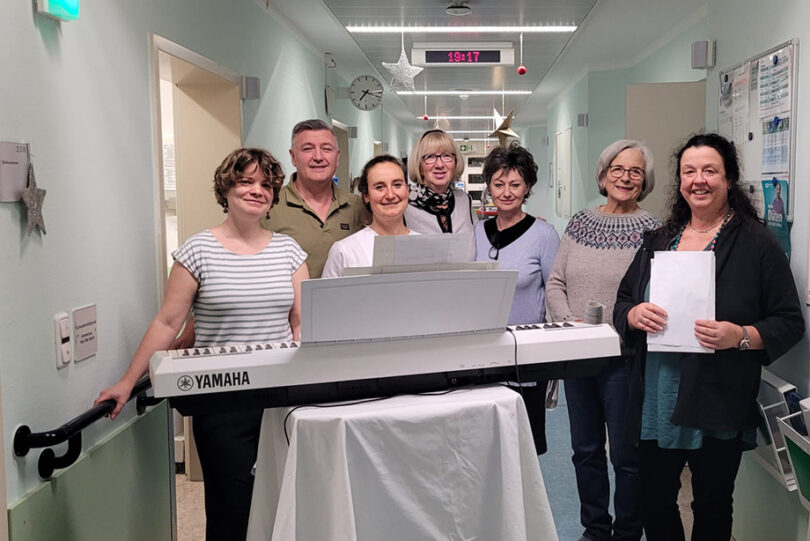 Bad Aibling – Schon fast traditionell trat auch heuer wieder eine singende Gruppe von Mitarbeitern in der RoMed Klinik Bad Aibling auf und brachte weihnachtliche Musik auf alle Stationen. Sänger und Pianist greifen dabei gerne auf einen altbekannten Fundus zurück. Weihnachtslieder wie „Leise rieselt der Schnee“ oder „O Tannenbaum, o Tannenbaum“ berühren auf ganz besondere Weise und Erinnerungen werden wach.