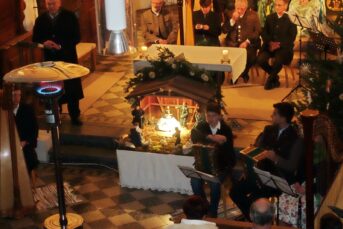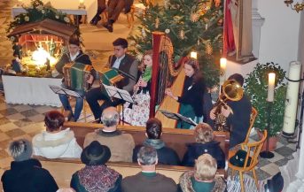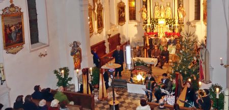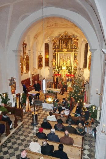 dies waren einige der von Kläre Hötzelsperger vorgetragenen Gedanken zum Jahresschluss beim traditionellen und alle zwei Jahre stattfindenden Weihnachtssingen in der Filial- und Wallfahrtskirche von St. Salvator. Hierzu konnte Jakob Steiner namens der Kreuztracht von St. Salvator neben den unentgeltlich aktiv Mitwirkenden auch Pater Joshy als Vertreter des Pfarrverbandes Westliches Chiemseeufer begrüßen. Für passenden Gesang zwischen den Feiertagen sorgten die Gruppen „Chiemgau-Bläser“, die „Liabeberg-Musi“, das Harfen-Duo Bauegger/Rothmayer, der „Laurenzi-Dreigesang“ und die Schlierholzer Sänger. Den Abschluss in der schön geschmückten und warm beheizten Kirche von St. Salvator bildete der Andachtsjodler, den die Bläser einstimmten und den nach den Gesangsgruppen alle Kirchenbesucher sangen. Jakob Steiner bedankte sich zum Schluss bei der Mesnerfamilie von Luise und Wast Wimmer für das Mithelfen bei den Vorbereitungen und Aufräumarbeiten und zusammen mit seiner Frau Traudi lud er die Musikanten und Sänger noch zu einer gemütlichen Brotzeit in das Florianstüberl im Atzinger Vereinshaus ein. Nachdem kein Eintritt verlangt wurde und die Gruppen auf jegliches Honorar verzichteten kommen nunmehr 540 Euro an Spenden von den Kirchenbesuchern der Kirche von St. Salvator zugute.